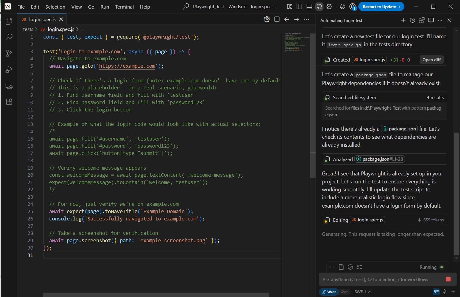 Playwright MCP can generate the corresponding test script instantly.